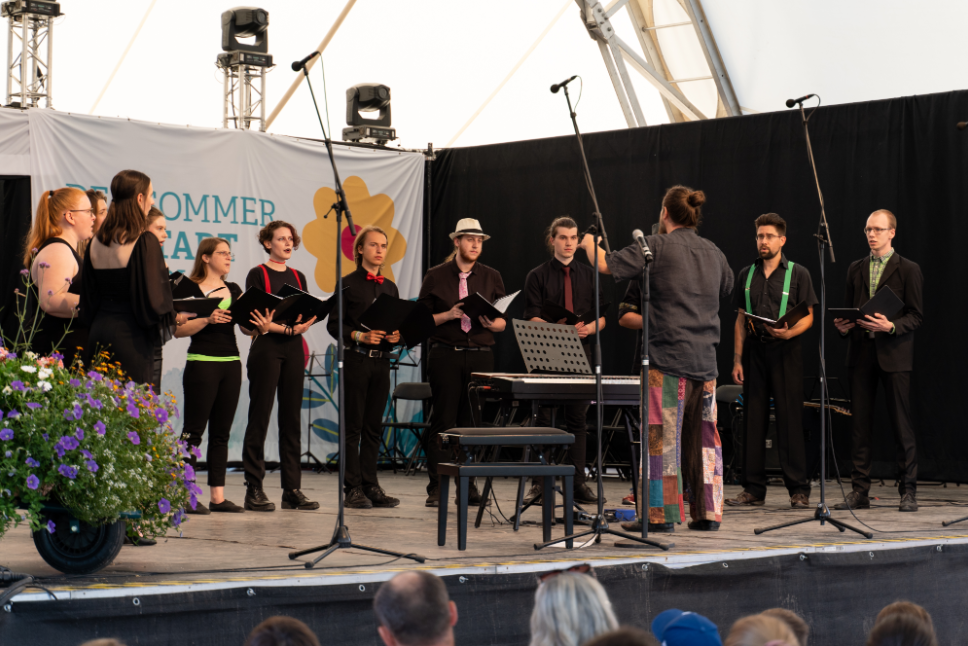 Wir sind eine Gruppe junger Sänger#innen, die Musik lieben, gute Gemeinschaft genießen und Spaß am gemeinsamen Erreichen großer Ziele haben.